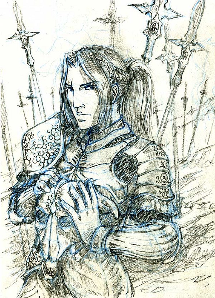 Mon premier dessin étant personnel, puisque c'est mon personnage dans la campagne du Yan, il n'est peut-être pas tout à fait dans le ton, même si le Yan m'a montré assez de sources pour que je puisse avoir quelques bases:
